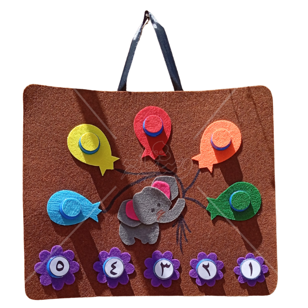 هذا النشاط التفاعلي المصنوع يدويًا من اللباد يُشجّع الطفل على تعلم الألوان والأرقام بطريقة ممتعة وملموسة.