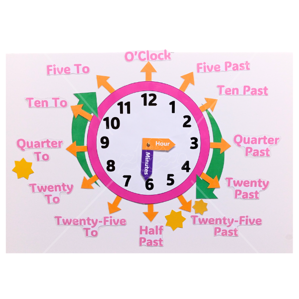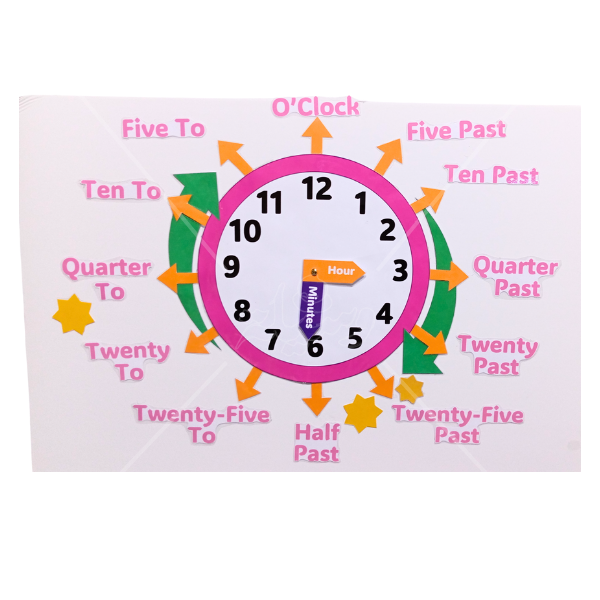 قراءة الوقت باللغة الإنجليزية قد تكون مربكة للأطفال، لكن مع لوحة الساعة التفاعلية الشاملة، سيصبح طفلك خبيراً في توزيع الدقائق والساعات بأسلوب بصري ومنطقي. صُممت هذه اللوحة لتكون ركناً تعليمياً أساسياً في الصفوف المدرسية المتميزة وبيوت العائلات المهتمة بتأسيس أطفالها بلغة إنجليزية قوية.